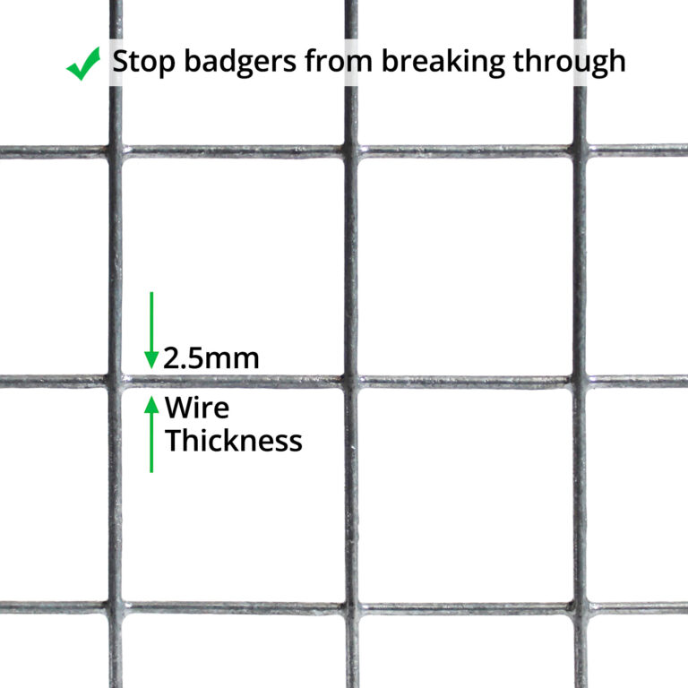 Extra strong and durable wire fencing to stop badgers from getting into unwanted areas. Available in 2.5mm (12g)+.