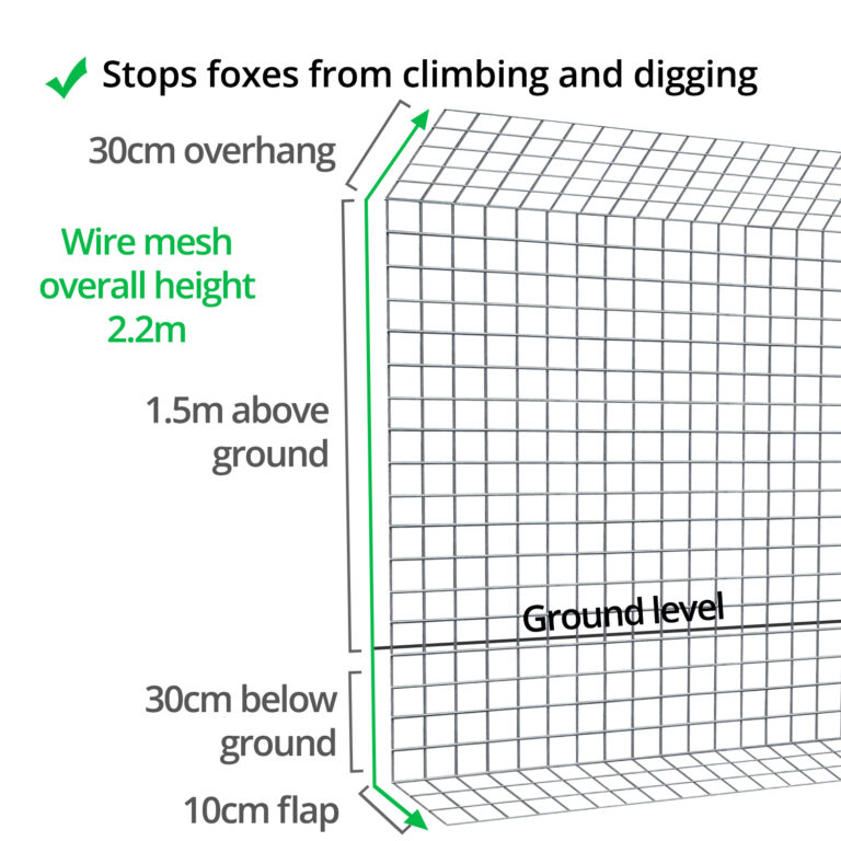 If there aren’t any predators around, you can use standard chicken wire mesh to create pens and chicken runs. However, keep in mind that urban predators are able to chew through wire with a diameter of less than 2 mm, so we recommend fox proof fencing for added security.