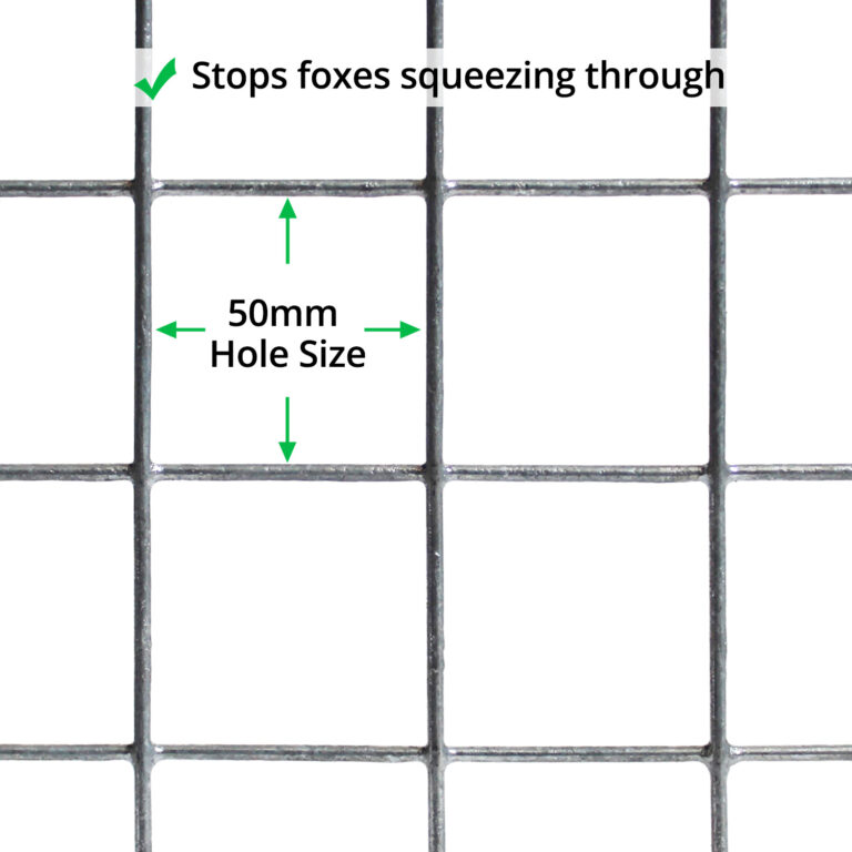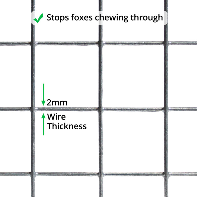 2mm (14g) and thicker galvanised steel wire mesh ideal for protecting your land and poultry from foxes or fox-proofing an existing fence.