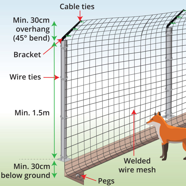 If there aren’t any predators around, you can use standard chicken wire mesh to create pens and chicken runs. However, keep in mind that urban predators are able to chew through wire with a diameter of less than 2 mm, so we recommend fox proof fencing for added security.