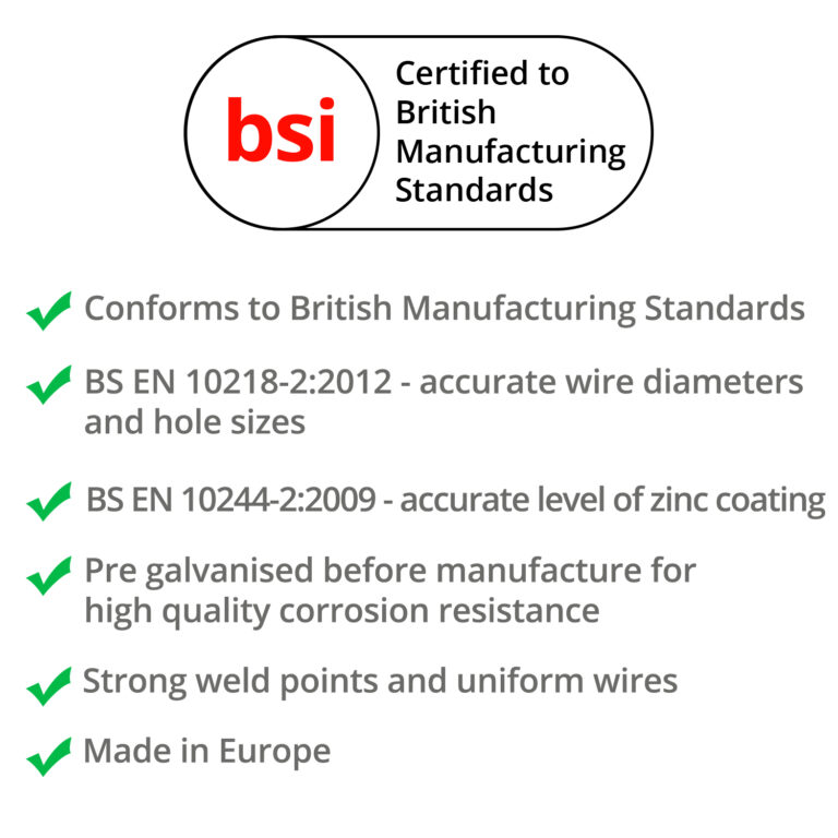 Mesh material | Galvanised steel | Galvanised steel | Galvanised steel |