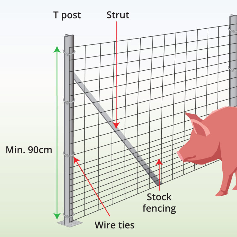Pig fence used for boundary marking and creating pens. Pig proof panels offer the simplest installation and pig stock fencing is the most economic.