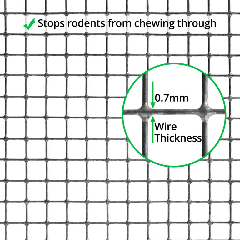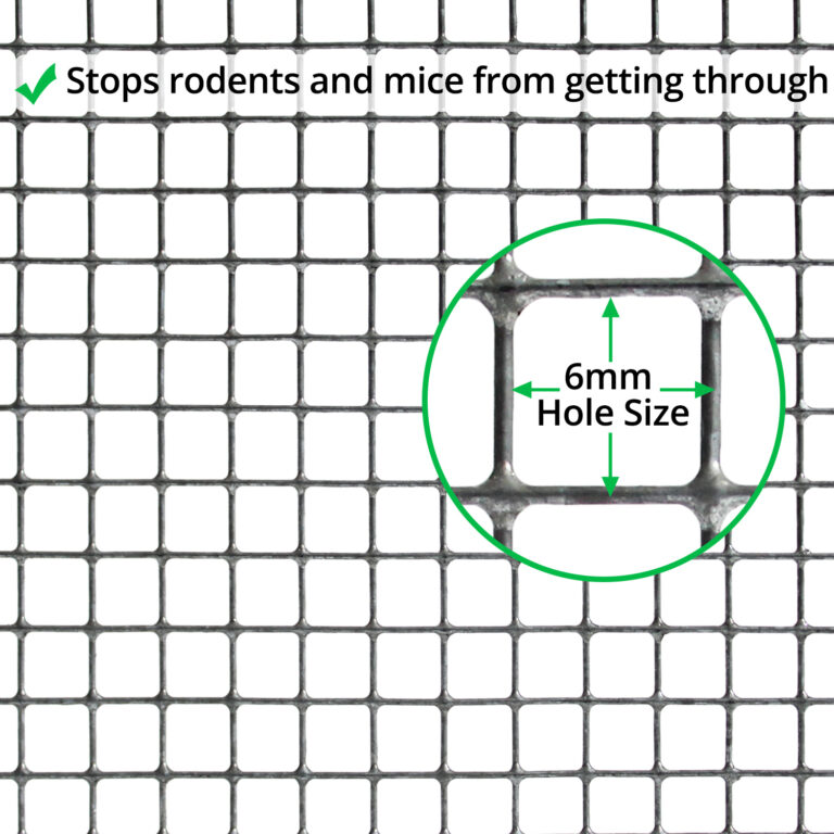 Rodent proof mesh has small 6mm holes to stop rats and mice getting through. The wires are 0.6mm or 0.7mm which will prevent the rodent from gnawing through the wire.