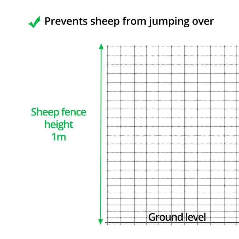 1.2m tall. If your netting is lower than 1m you can install a stand of tension wire or barbed wire at the top (view instructions) to increase the height.