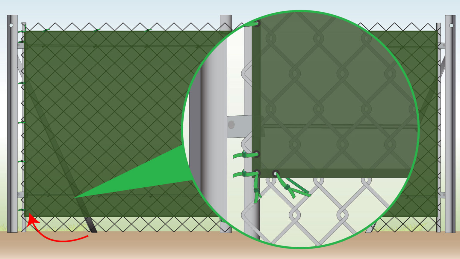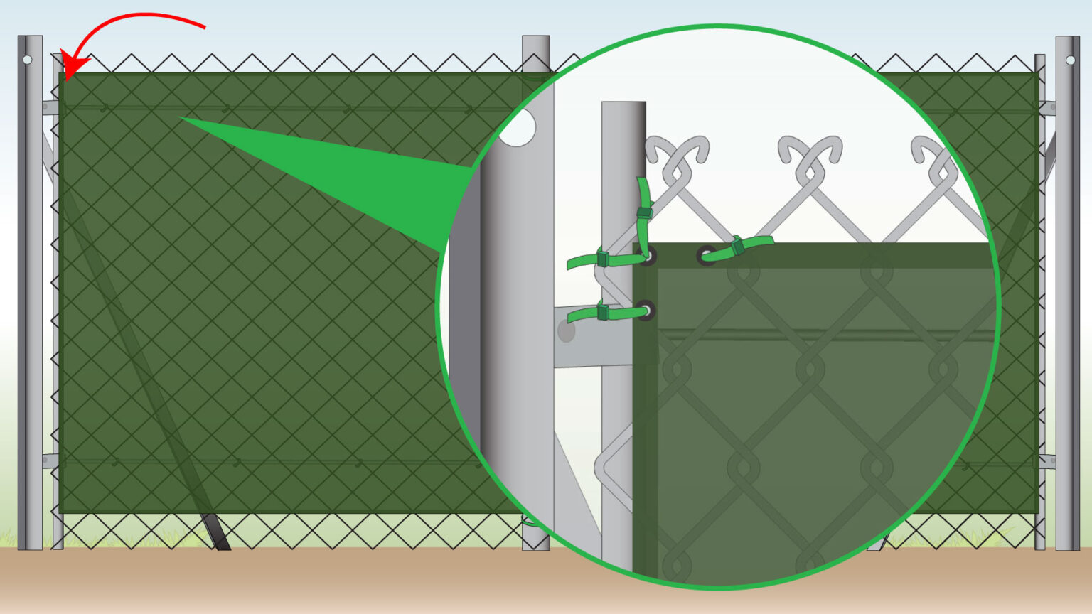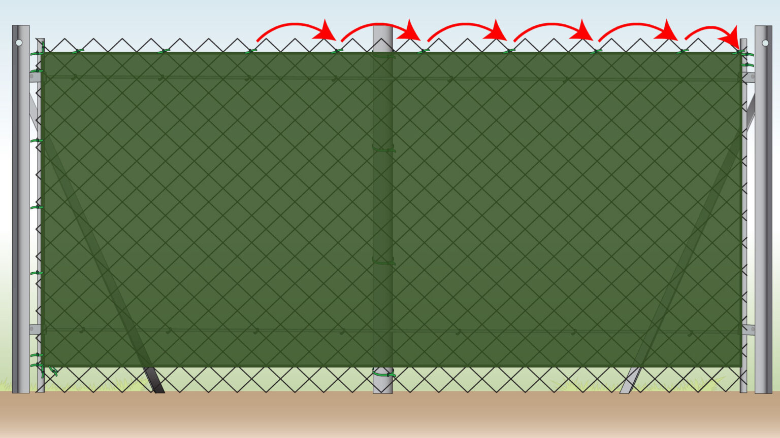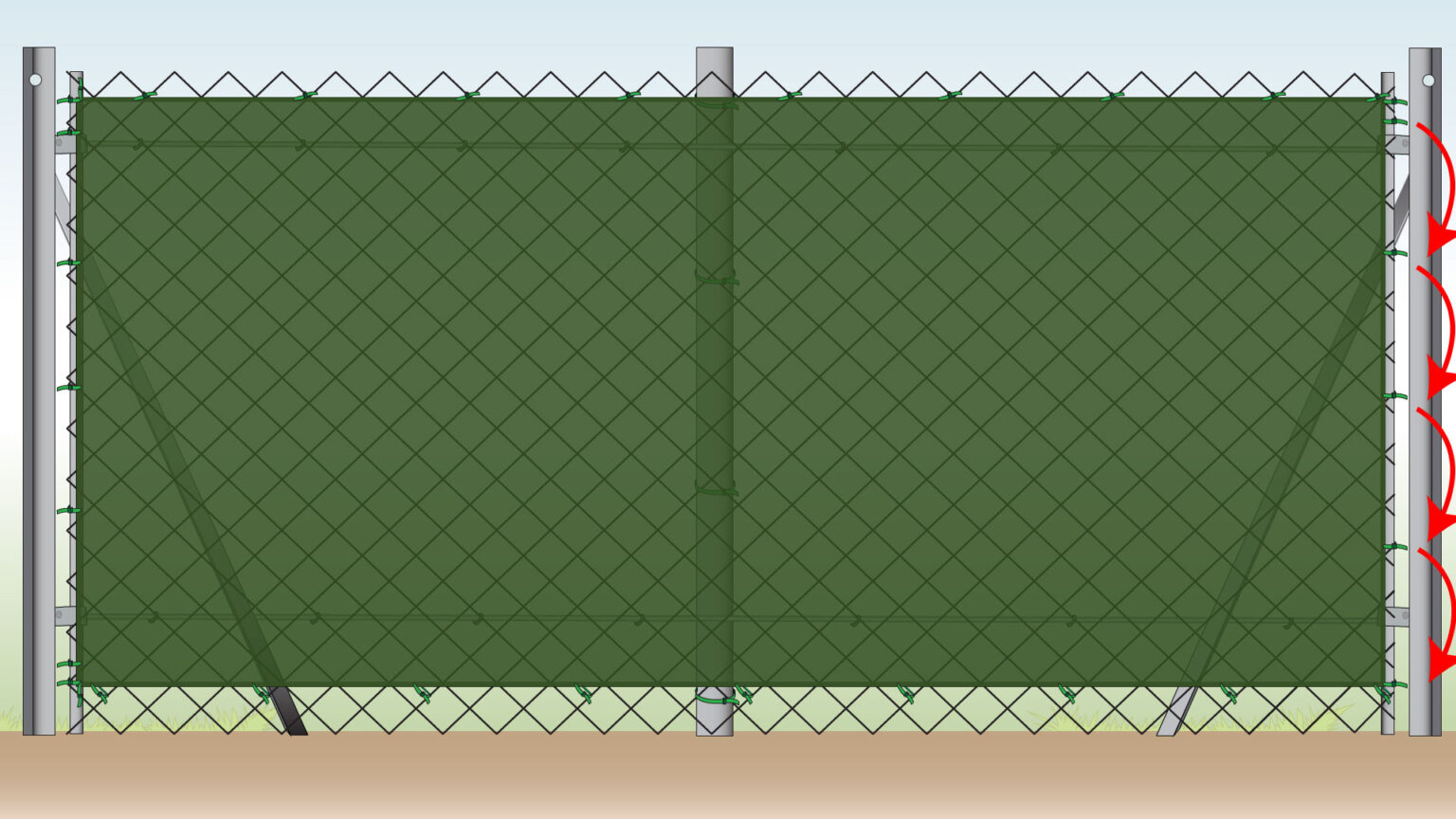 - Always secure each screen directly to the chain link fabric, never mesh to mesh.