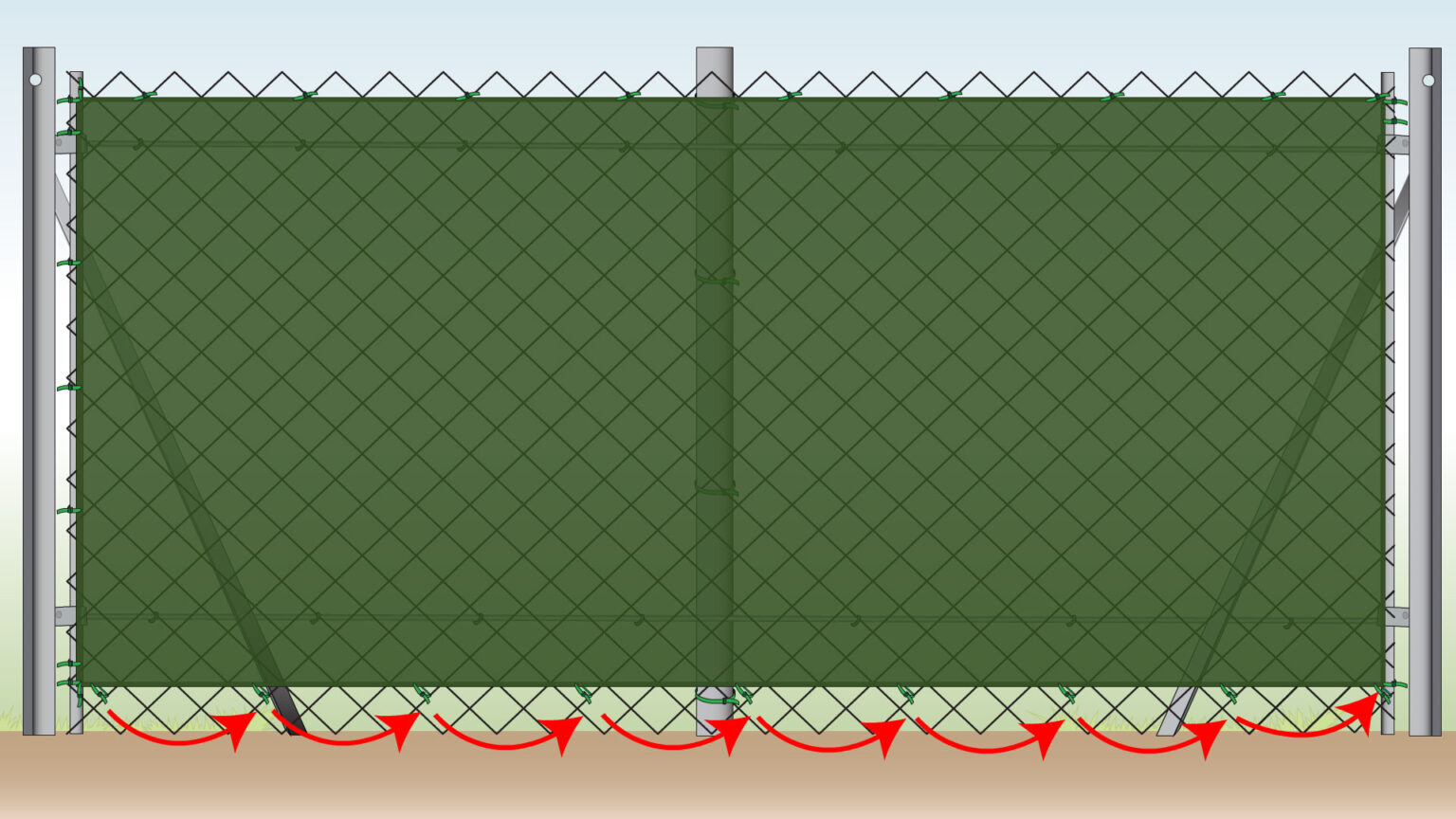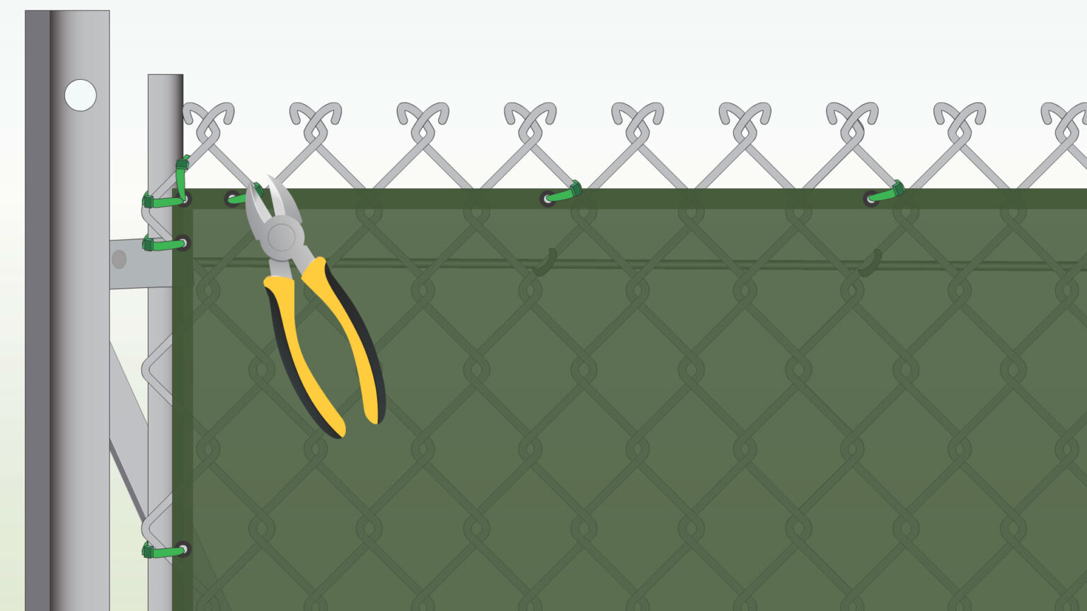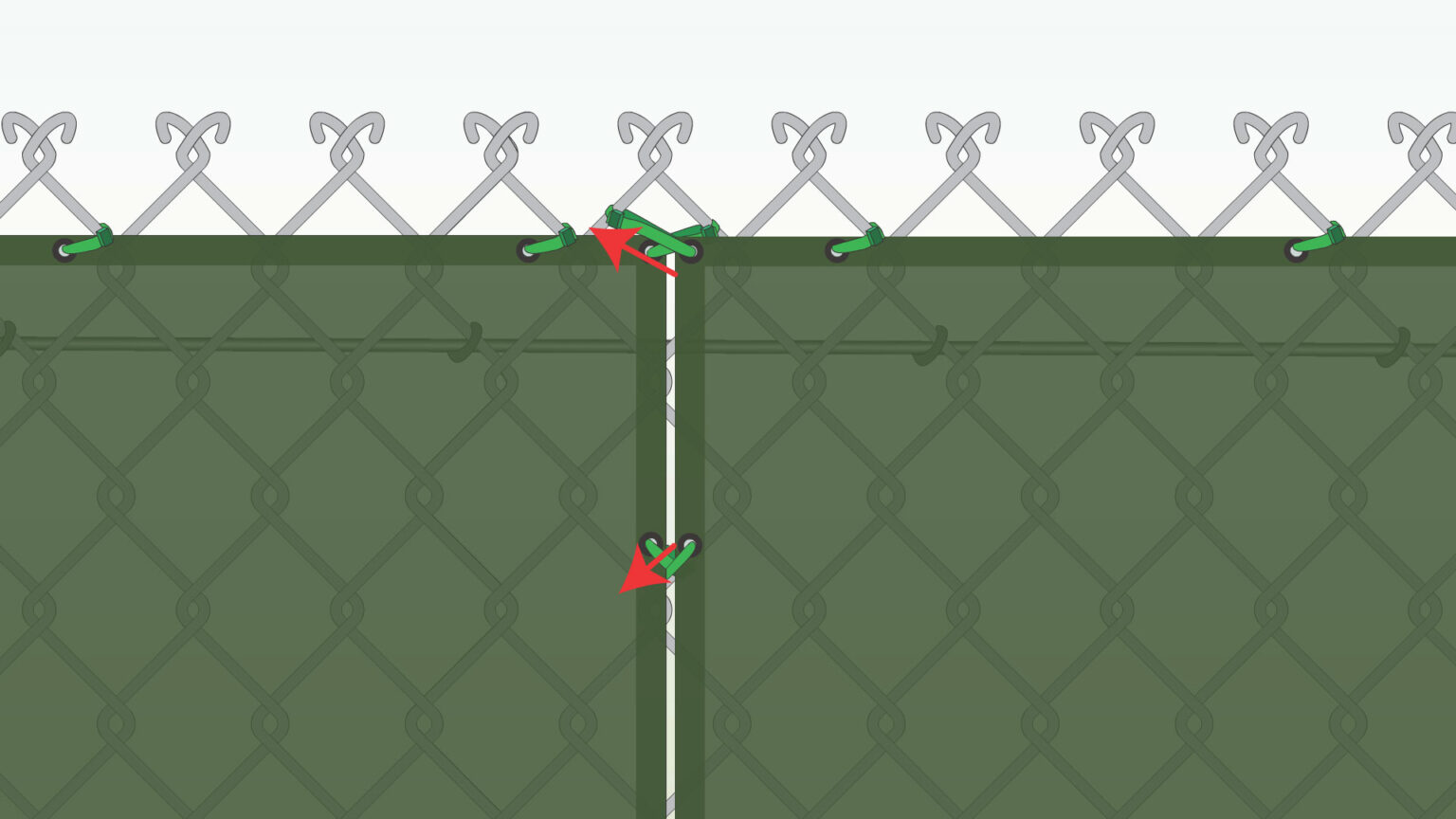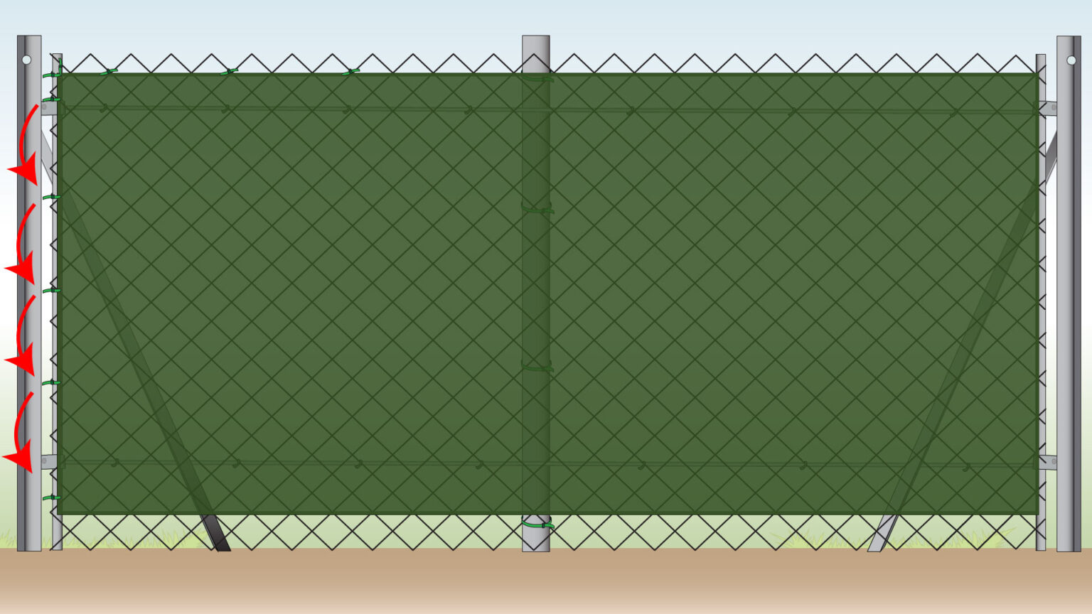 - Always secure each screen directly to the chain link fabric, never mesh to mesh.