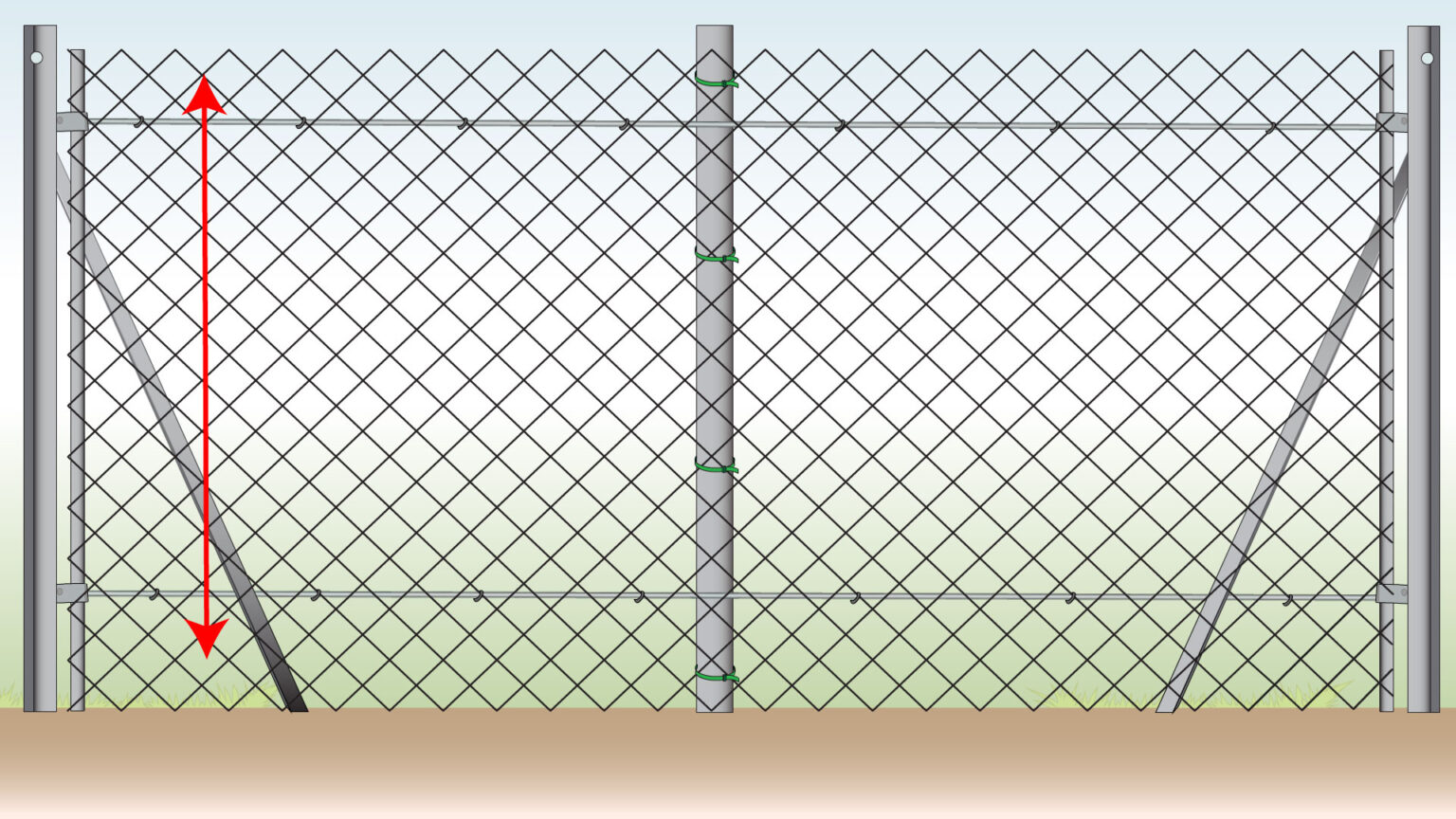 - Measure the height from the top corner of the chain link diamond to about 10 cm above the ground, so the mesh cover doesn’t touch the ground and can be properly attached at the bottom.