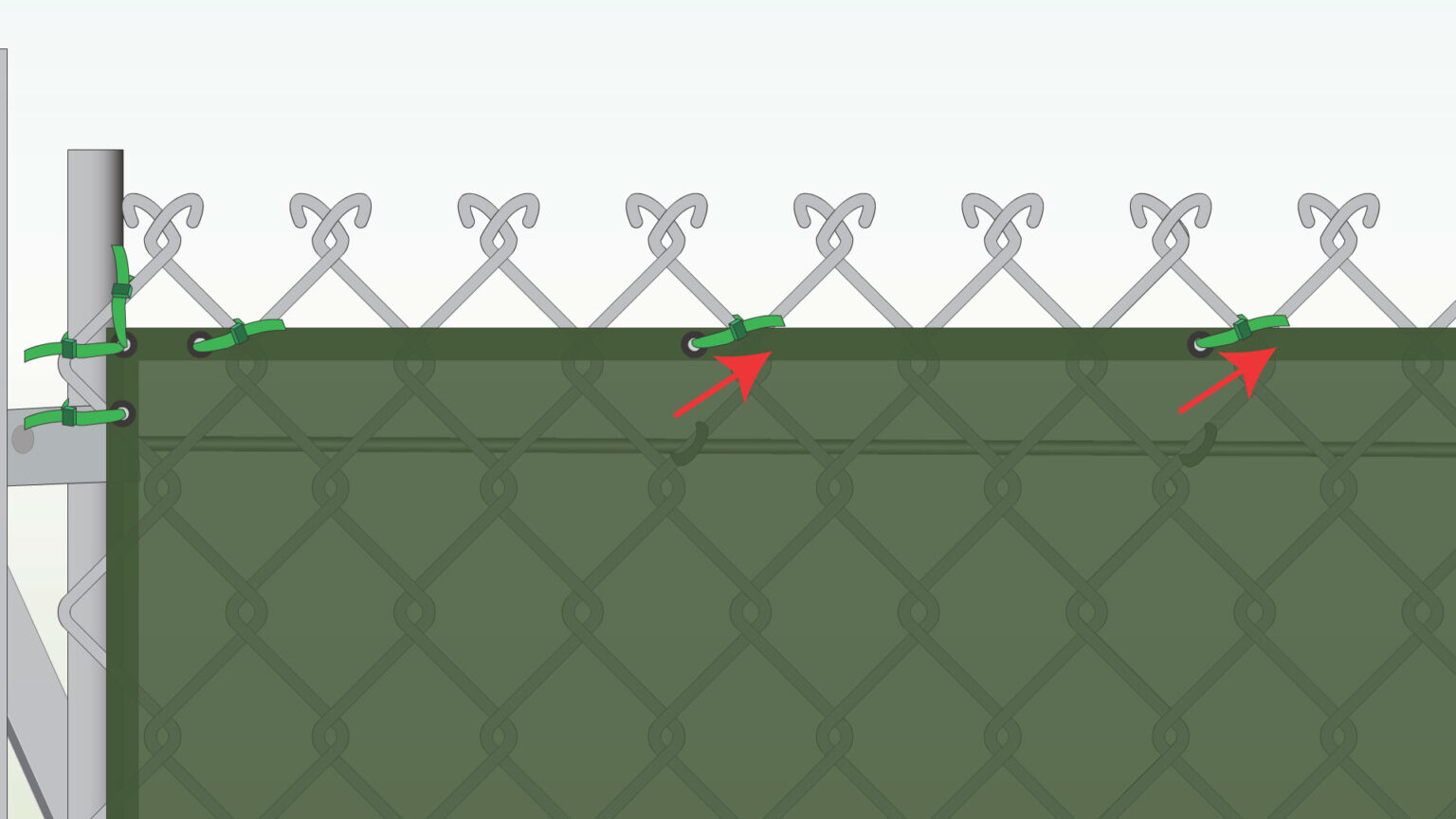 - If it does not have middle grommets, push the cable tie through the screen fabric and around the chain link to prevent movement.