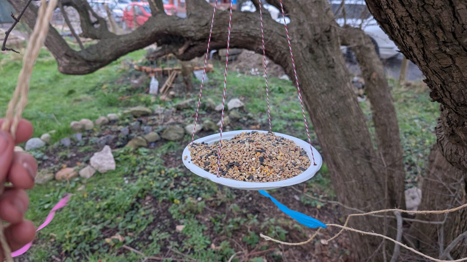 - Make the feeders in the garden to save on the epic wiping up after you have finished. Any feeder that needs peanut butter, suet, or lard is messy, messy, and I didn’t have kids helping me.