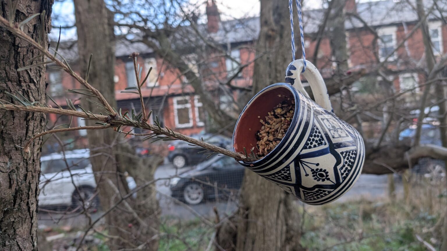 9. Coffee Mug Bird Feeder