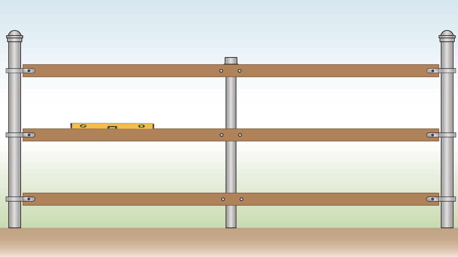 - Fasten the rails to the middle posts at the top, middle, and bottom using fence brackets for added support.
