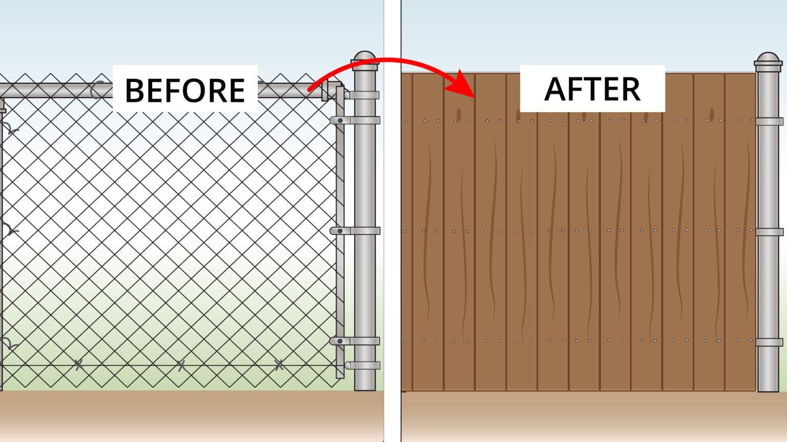 Convert Chain Link Fence to Wood