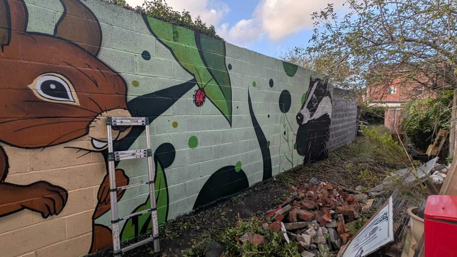 Each house on the street voted for three wild British animals. The five animals with the most votes were painted on the wall. They included squirrel, badger, rabbit, butterfly and ladybird. There was also a vote for a unicorn, but it didn’t make the top five.