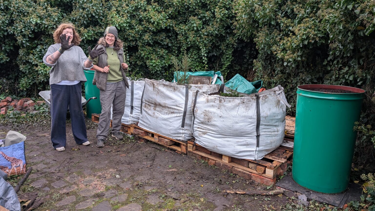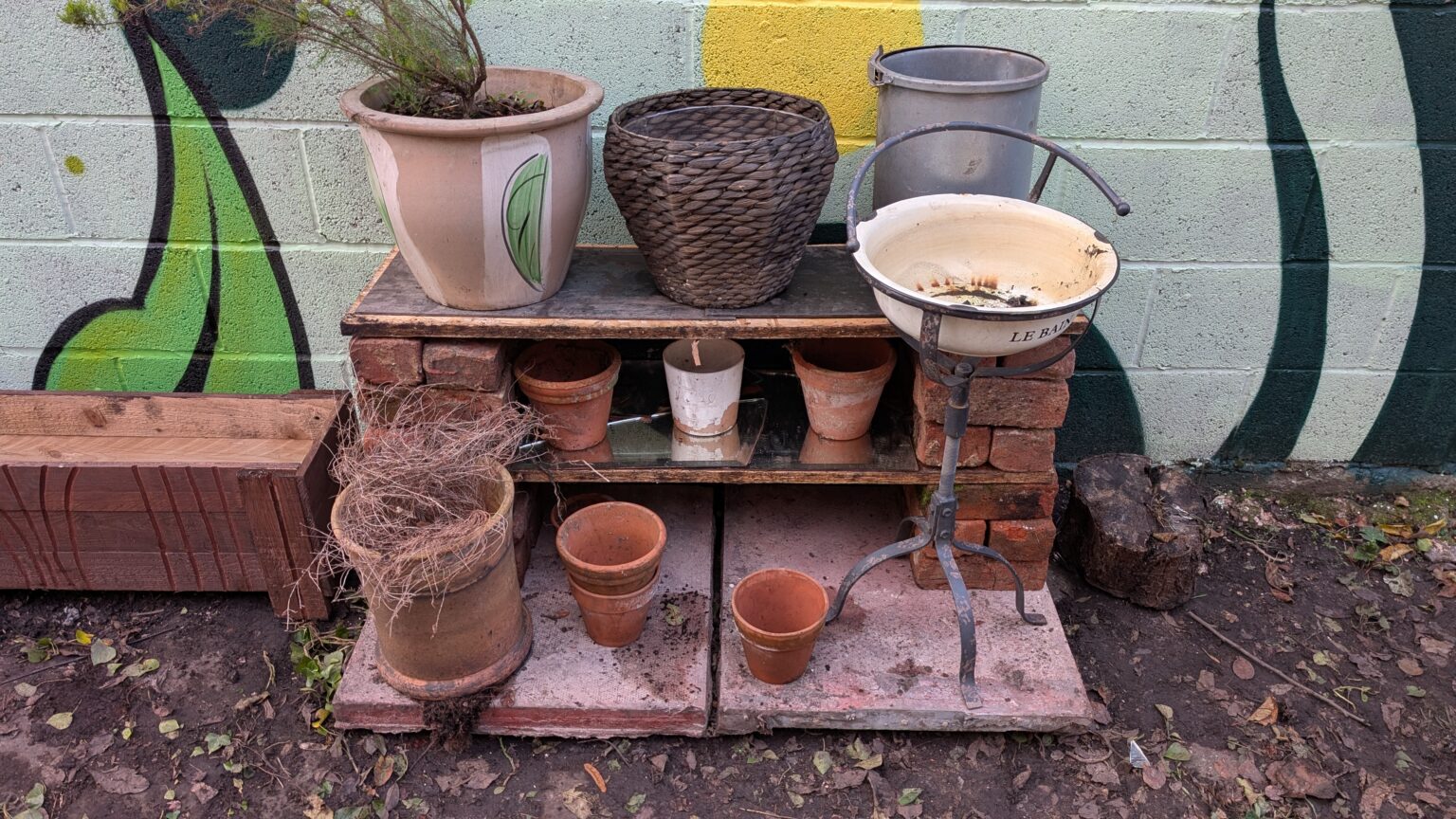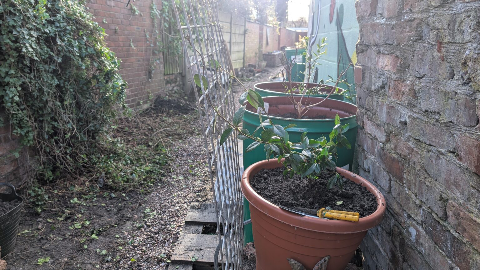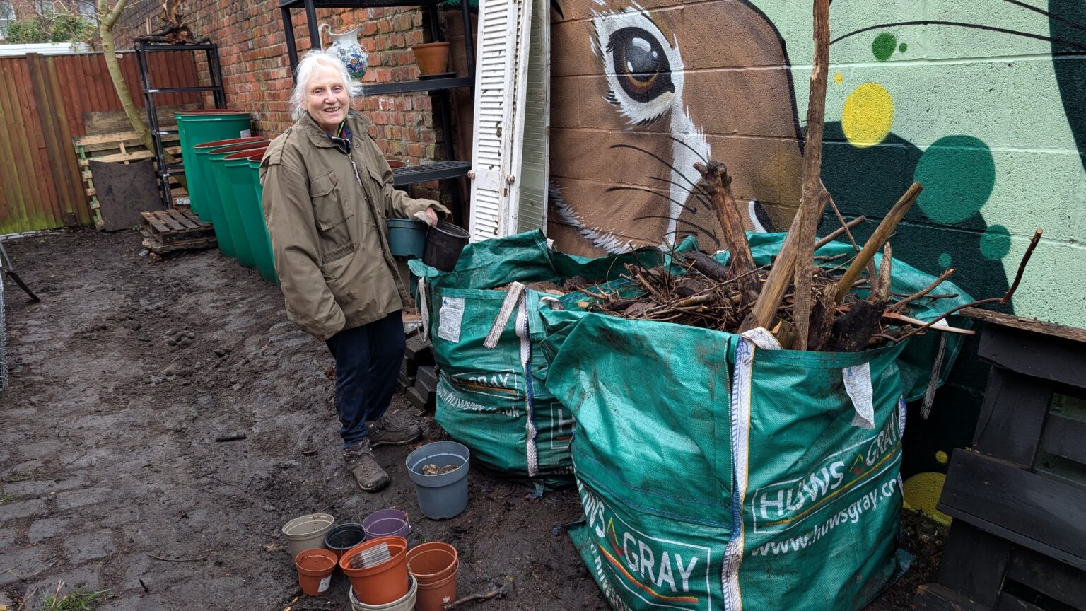The neighbours helped to take the soil from the alleyway entrance to the planters and pots that needed filling