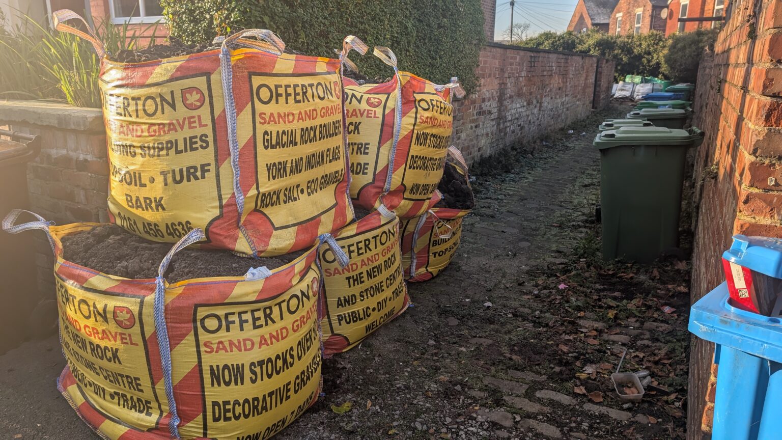 The soil delivery was a bit of a nightmare. The truck took up the width of the road and had to crane the soil bags over parked cars to get them into the alleyway.