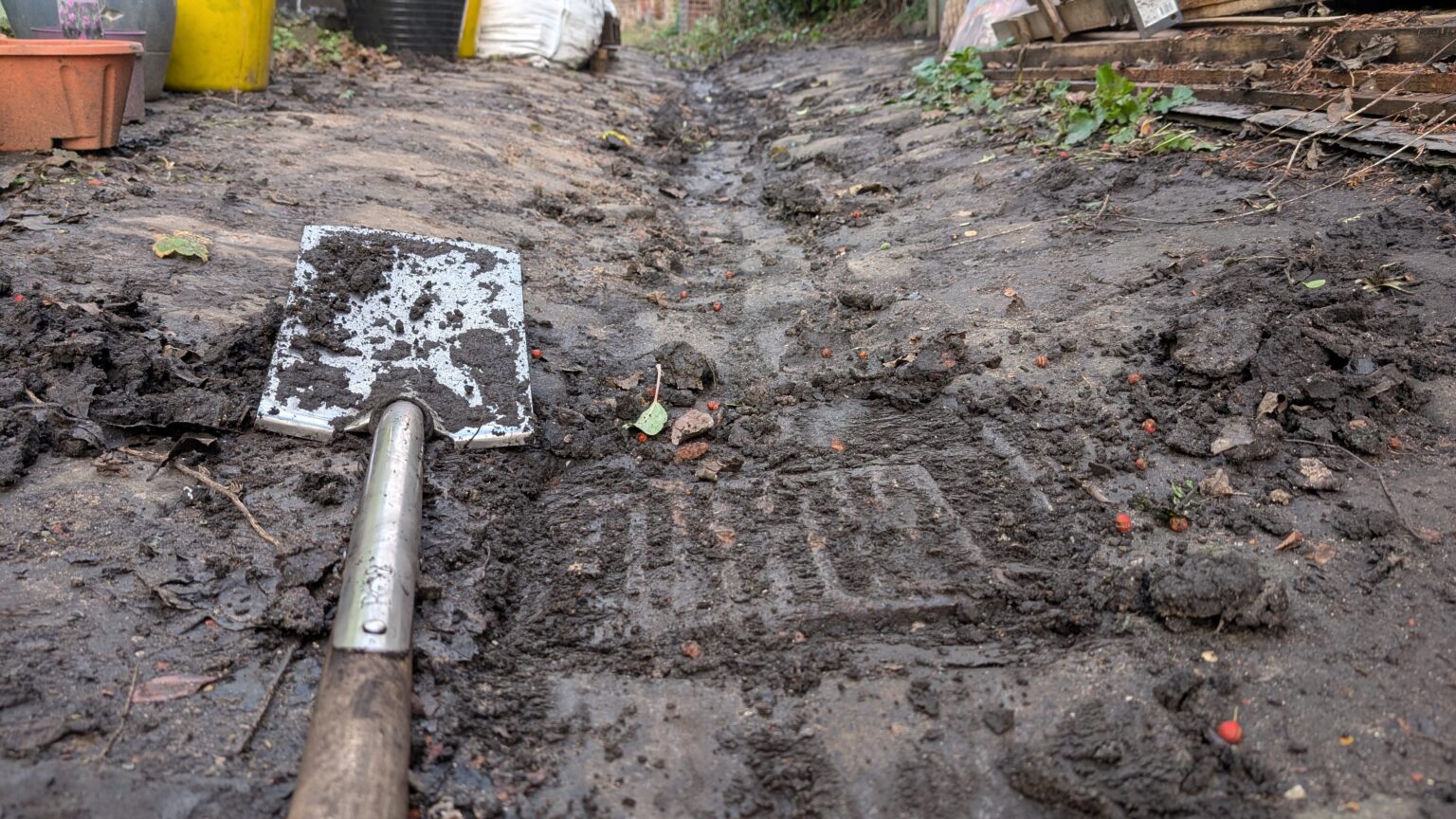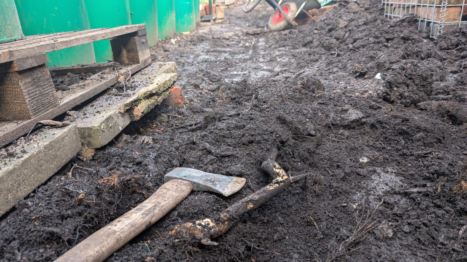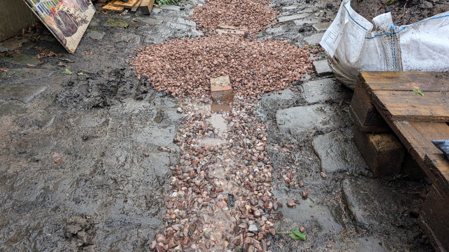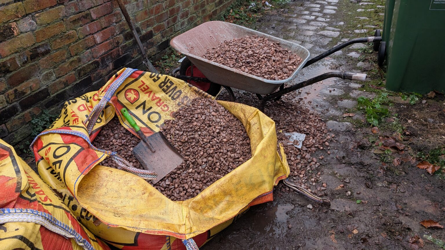 We got 2 tonnes of gravel delivered, which we had to spread evenly throughout.