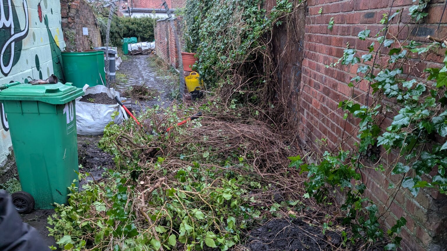 We removed the overgrowth that was covering up some of the neighbours’ access to the alleyway.