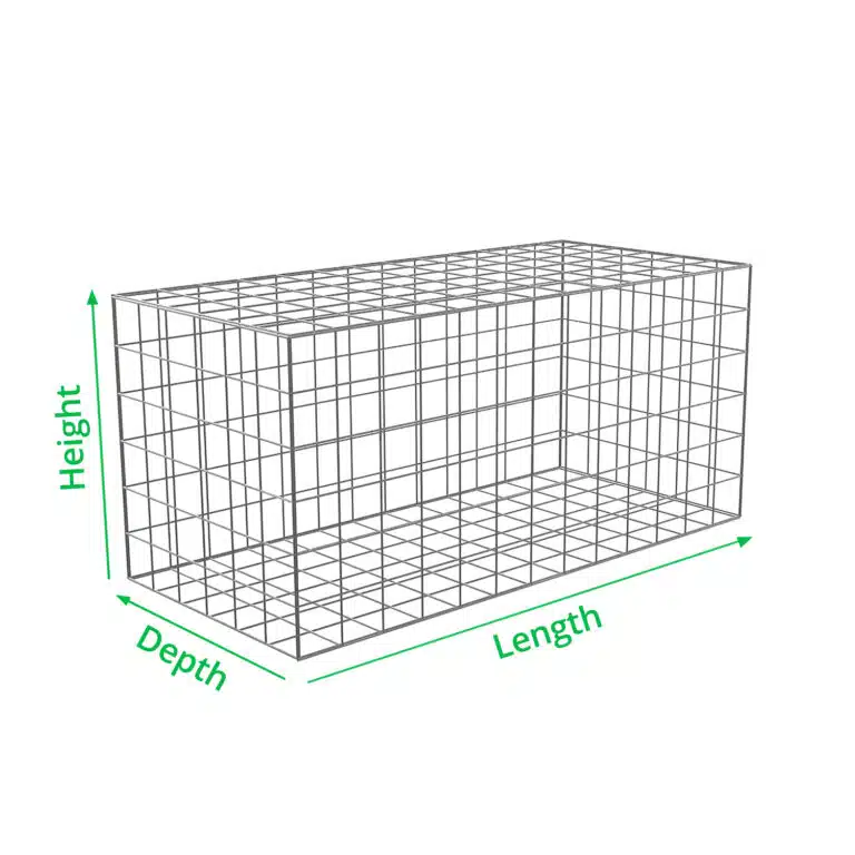 | How to assemble | Gabions are delivered flat packed with the sides, bottom and lid clipped together. Upon arrival, the corners of the gabions should be attached to complete assembly. |