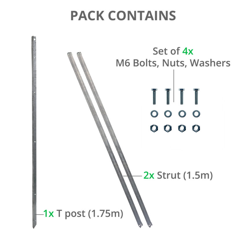 | Quantity in Pack | x1 T post, x2 Strut post |