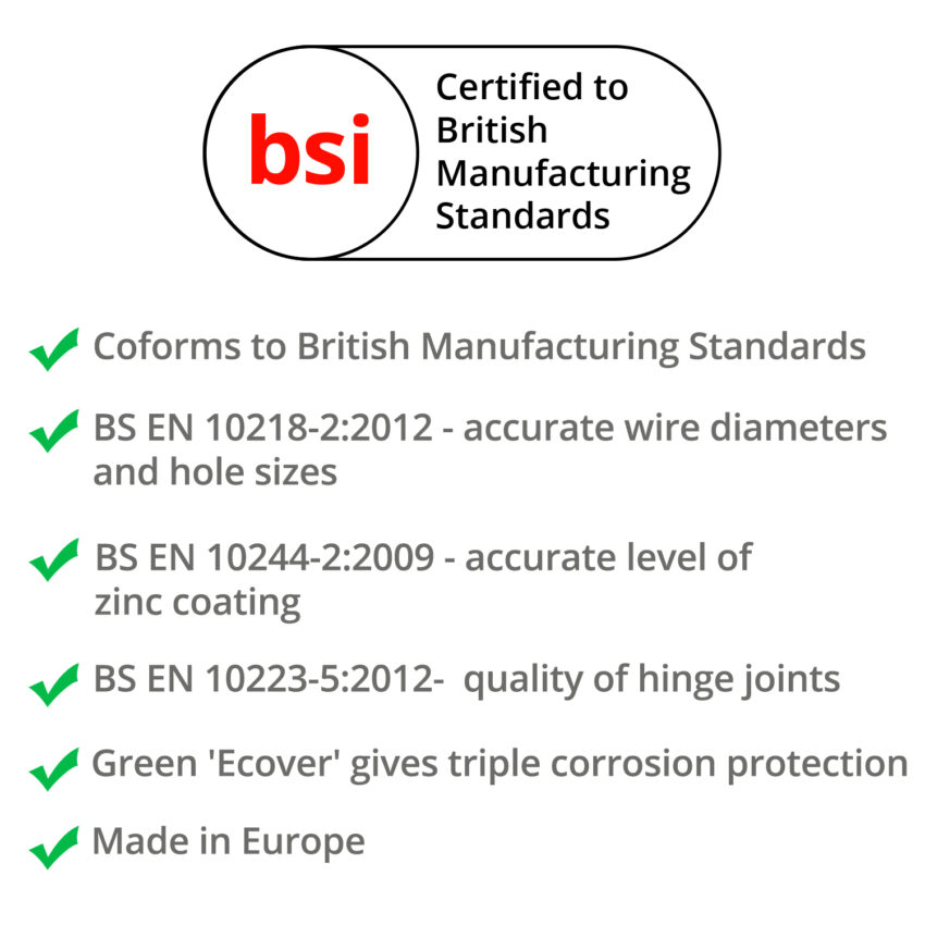 | Accurate Zinc Coating | Yes – conforms to BS EN 10244-2:2009 |