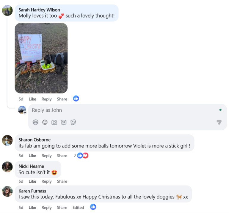 The gesture was a holiday surprise for early morning dog walkers—a small Christmas gift for their pets. “We wanted to do something that would bring a smile to people’s faces and add a bit of holiday magic to their routines,” said John Summers. “It’s a simple way to spread joy this Christmas season.”