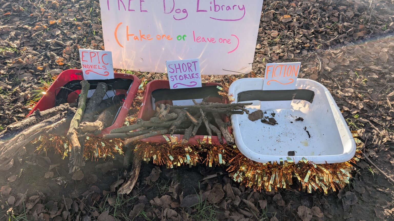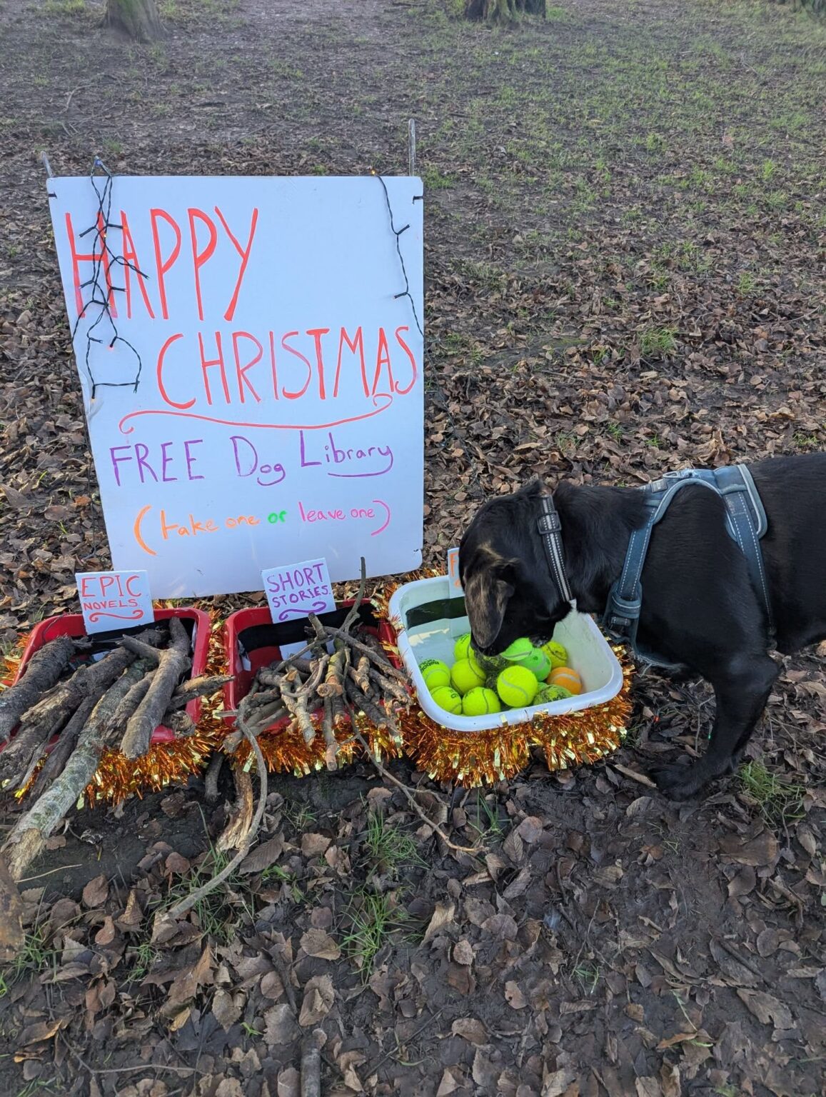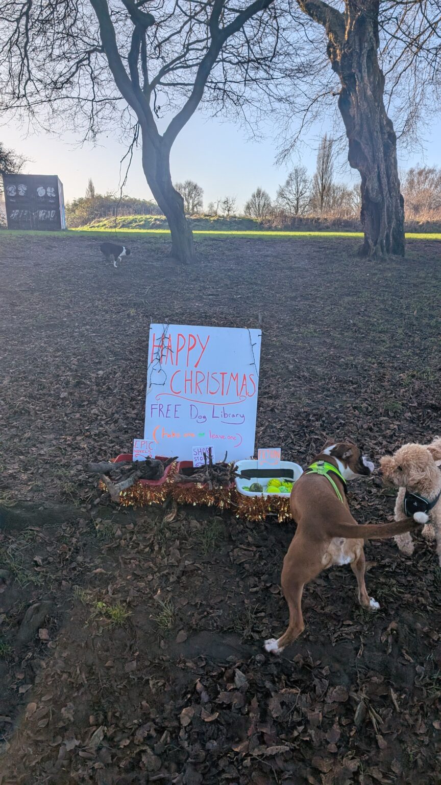 At 4 a.m., John Summers, founder of Wire Fence and a local resident, installed the Dog Library at the entrance to Levenshulme’s popular Cringle Park. The library offers a selection of sticks, tennis balls, and throwing toys for dogs to take and enjoy, with the option for owners to leave something behind for the next dog.