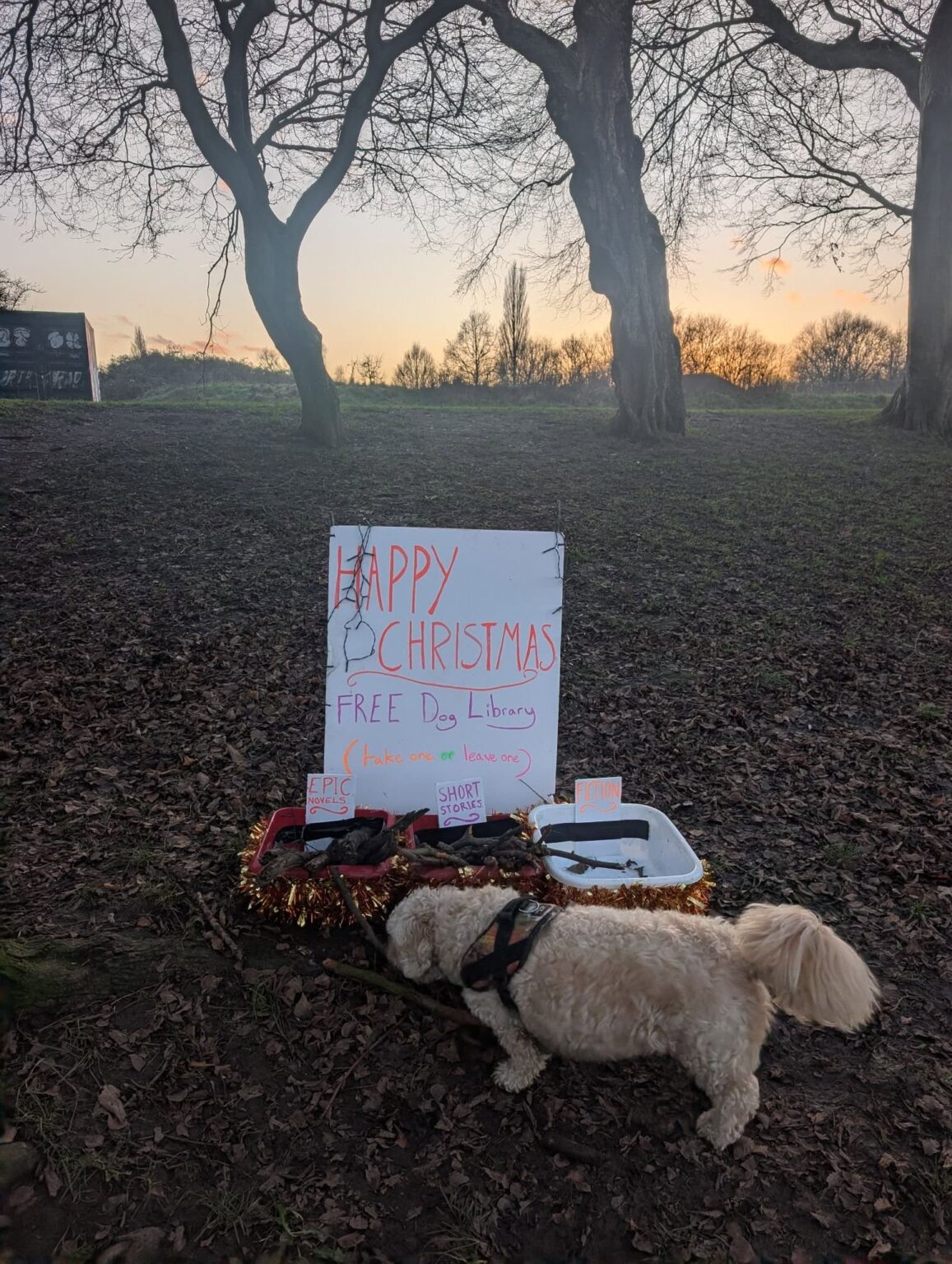 Wire Fence Spreads Holiday Cheer with Surprise Dog Library in Local Park