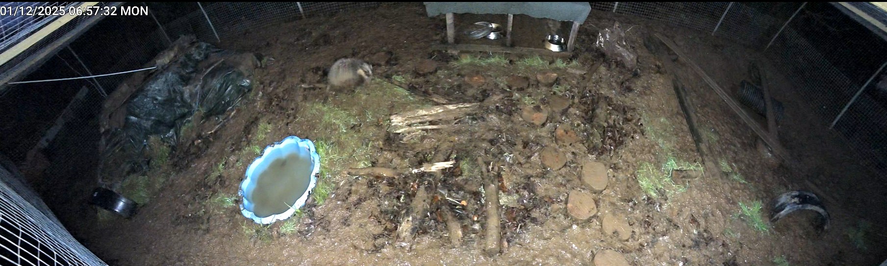 The autumn weather was against us but we persevered through rain, mud and the odd freezing evening to get the enclosure ready for Elowen to move in on the 23rd November. She has settled into her new surroundings well and become very confident getting reacquainted with the outdoors, exploring every bit of the enclosure and running around the playground we built. She also decided to do a bit of “remodelling” in her artificial sett, digging herself a chamber to snuggle into, and we’re so happy to see that her instincts are all there which is exactly what we wanted to encourage.